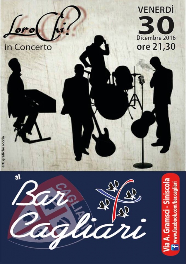 Buone vibrazioni rock al Bar Cagliari di via Gramsci. Venerdì 30 dicembre, dalle 21.30, si esibiranno i “Loro Chi?”, quartetto composto da Pier Mario Bacciu (chitarra e voce), Gianni Corona (Tastiere e voce), Alberto Manca (batteria) e Giovanni Medde (basso).