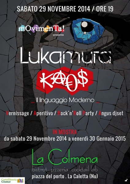 LA CALETTA - L'Associazione Culturale “mOvimenTa!” organizza la mostra “KAOS”, una serie di opere artistiche a cura di Luka Mura, dove la realtà assume le forme di «un insieme di frammenti comunicanti, un puzzle di protesta, una rivoluzione che parte dalla reinterpretazione stessa del mosaico» e viene assemblata dall'artista che «cerca di mettere insieme i pezzi per dare un senso agli eventi che scandiscono e condizionano la nostra quotidianità».
