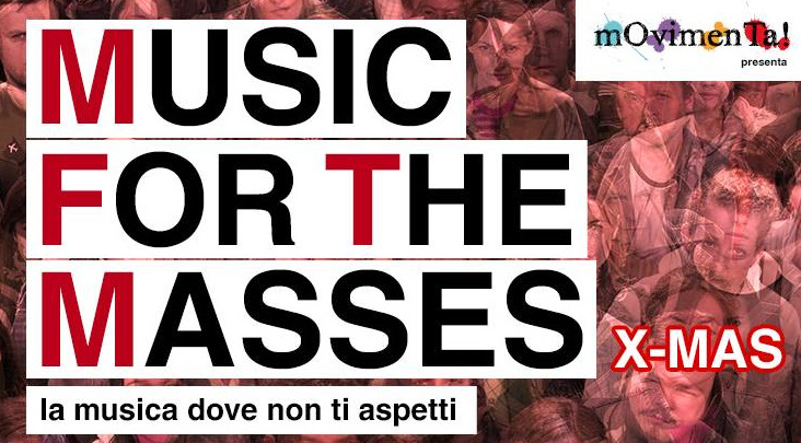 Il progetto musicale «trae ispirazione - si legge nel comunicato dell'Associazione - da un lavoro di Brian Eno del 1978. Music for the Masses. La musica dove non ti aspetti è un percorso che si snoda nell’arco di un’intera giornata, no-stop, da un luogo all’altro. Un dj-set itinerante che sposta e contamina i luoghi in cui si svolge, che adatta la propria idea di musica alla funzione del posto in cui si svolge. L’obiettivo è portare la musica al di fuori dei luoghi deputati al suo ascolto, per regalarle la funzione di aggregatore e collante sociale. L’idea di base è semplice: unire, in un percorso itinerante, diverse attività commerciali che a orari diversi propongono una selezione musicale ragionata che possa “accompagnare” l’utente che si trova in quel luogo. “Così come anni fa diversi movimenti artistici hanno voluto modificare l’idea di visione dell’arte contemporanea, portandola fuori dai luoghi deputati alla sua fruizione, come i musei, allo stesso modo si può fare con la musica portandola al di fuori di un luogo convenzionale e proponendo la stessa al di fuori dei classici contesti e in orari convenzionalmente non adatti”, spiega l'ideatore di Music for the Masses. La musica dove non ti aspetti e socio di mOvimenTa!, Paolo "Angus" Carta. La musica va dagli utenti e non viceversa: tramite l’apparizione live del dj, la musica arriva a persone che altrimenti non avrebbero possibilità concreta di entrare in contatto con la stessa. Lo scopo finale è dimostrare che la musica non ha orari, luoghi e spazi determinati ma può esser ascoltata, ballata, sentita in qualsiasi momento e in qualsiasi luogo».