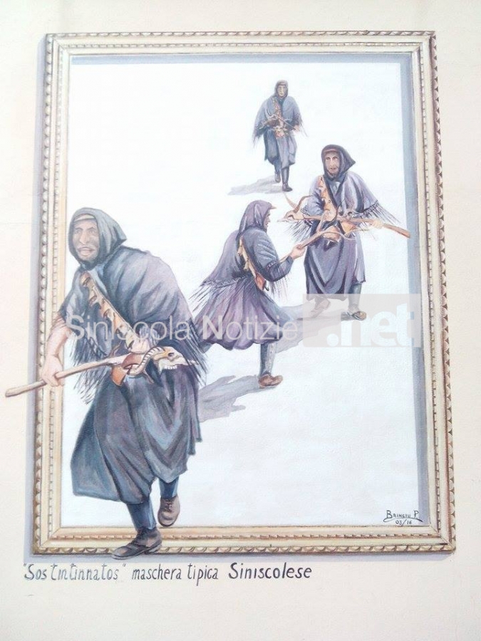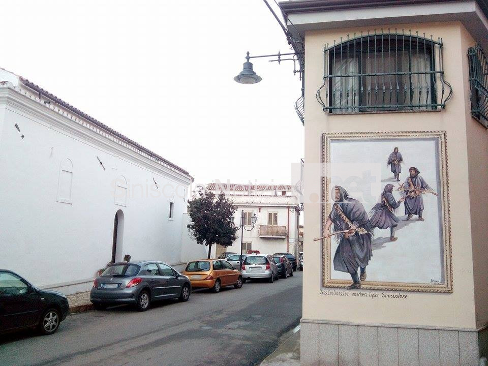 Il dipinto che ritrae le antiche maschere siniscolesi, sito nell'angolo tra le vie Sassari e S. Antonio, rappresenta la quinta opera murale che l'artista ha eseguito a Siniscola.