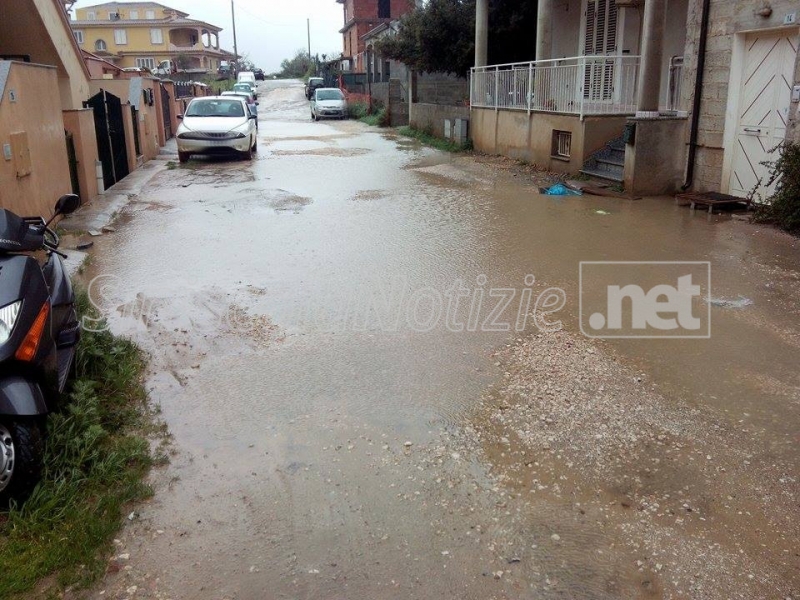 Le cattive condizioni meteorologiche che si sono verificate nelle scorse ore a Siniscola (e che continuano a verificarsi nel momento in cui scriviamo) hanno creato alcuni disagi alla popolazione. In alcune zone del centro urbano tratti di strada non asfaltati, come ad esempio in località “Sa sedda”, si sono trasformati in grandi pozze d'acqua rendendo difficoltoso il transito pedonale.
