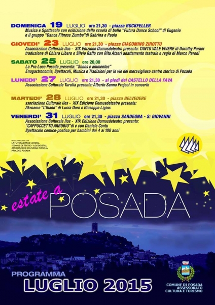 Di seguito gli appuntamenti di luglio organizzati nell'ambito della rassegna "Estate a Posada":