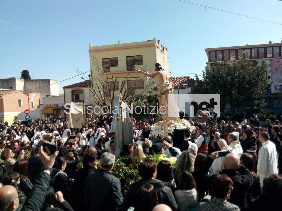 Il rito de “S'Incontru”, organizzato dalla Parrocchia e dalla Confraternita del Rosario in collaborazione con la Pro Loco, chiuderà questa mattina i riti della Settimana santa. Alle 10.30 i simulacri della Madonna (insieme ai confratelli e alle consorelle) e del Cristo risorto (accompagnato dai fedeli in costume tradizionale) partiranno rispettivamente dalle chiese del Rosario e San Giovanni per “incontrarsi” nei pressi della piazza del mercato. Dopo il triplice inchino che suggellerà il saluto di Maria e del Figlio (e che sarà accompagnato dagli spari a salve dei fucilieri appostati sul terrazzo della sede Pro Loco), le due statue faranno rientro nella chiesa parrocchiale dove sarà celebrata la messa solenne di Pasqua cantata dalla Corale San Giovanni Battista.